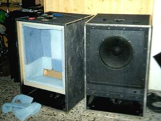 Im Frühling 1997 spielte ich noch bei den "Euphorikern" als Gitarrist. Wamb waren so ziemlich die Ersten, die mich fragten, ob sie nicht die Anlage mal bekommen könnten. Damals hatte ich eine WPA 600 (2 x 120 Wsin) und zwei Bassboxen (15") mit zugehörigen Tops (12" + 1"). Alles selbst gebaut, mit Teppich und Stahlkanten verziert ... ich meine geschützt. |